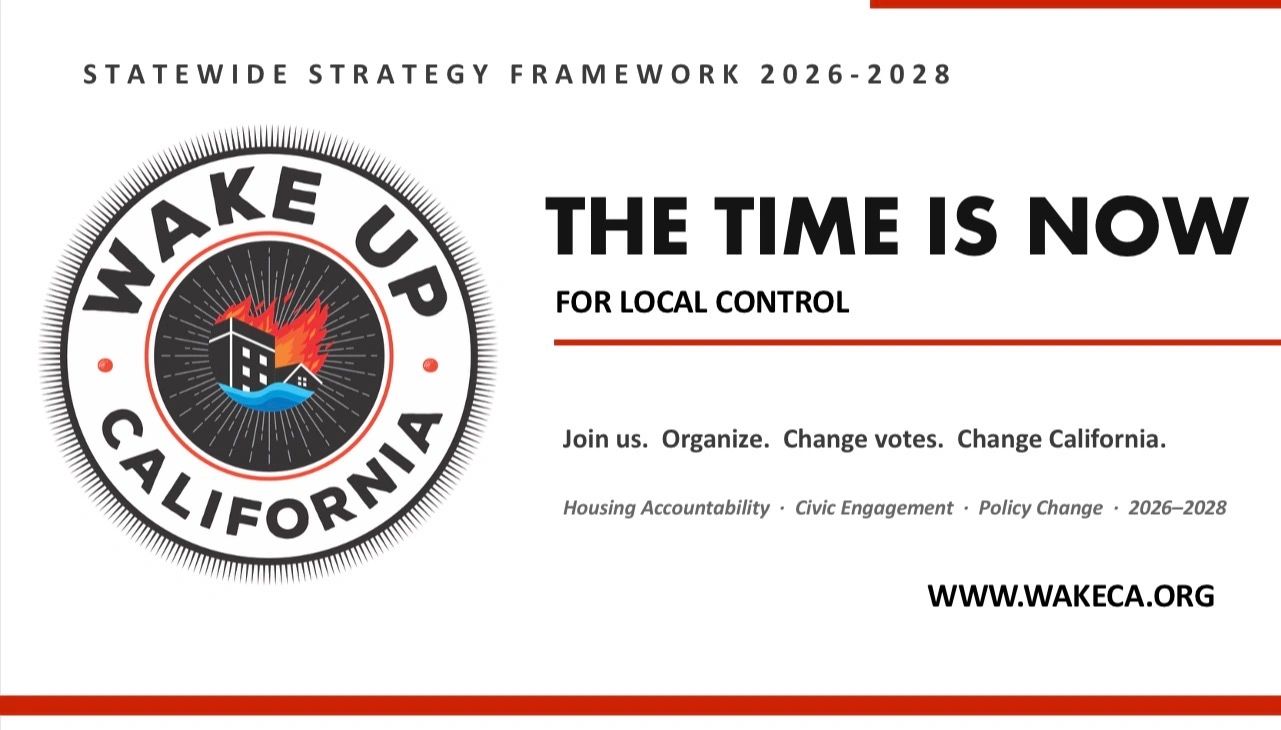 We’re exposing the truth of California housing policy and channelling our collective outrage into a larger voice advocating for real solutions. If you reject the way developers are reshaping your community without restraint — ignoring safety and livability — WAKE UP is for you.